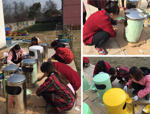 為了進(jìn)一步提升校園文化,創(chuàng)建更加優(yōu)美的育人環(huán)境,推動幼兒園建設(shè)朝著凈化、美化、規(guī)范化的方向發(fā)展,幼兒園青年教師對園內(nèi)垃圾桶進(jìn)行美化、裝飾。 教師們先選稿、討論設(shè)計(jì)方案,再畫底稿,最后調(diào)油漆上色。經(jīng)過老師們的巧手布置,原本單調(diào)呆板的垃圾桶一個(gè)個(gè)鮮活起來。孩子們來園看到一個(gè)個(gè)五彩繽紛的垃圾桶興奮極了,非常樂意把垃圾撿起來扔進(jìn)漂亮的垃圾桶里。 據(jù)悉,本次活動是該園繼設(shè)計(jì)創(chuàng)意家園聯(lián)系欄、廢舊輪胎變廢為寶、裝飾走廊墻飾等活動后的又一次環(huán)境創(chuàng)新活動。這些活動不僅有效促進(jìn)了該園教師環(huán)境創(chuàng)設(shè)理念的更新、提升了創(chuàng)設(shè)技能和品位,同時(shí)促進(jìn)了教師之間的相互學(xué)習(xí),認(rèn)識到了環(huán)境創(chuàng)設(shè)對幼兒發(fā)展的價(jià)值,更為自己積累了有益的經(jīng)驗(yàn),為以后更好的開展環(huán)境創(chuàng)設(shè)打下堅(jiān)實(shí)的基礎(chǔ)。
