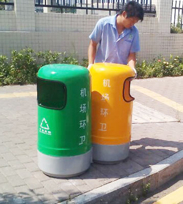 深圳機場環衛采購欣方圳玻璃鋼雙桶垃圾桶