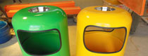 玻璃鋼垃圾桶桶身和內膽部分,采用高級玻璃鋼材質一次成型,經過打磨、除塵 、噴漆等一系列后期工藝然后出成品。