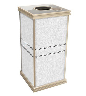 • 產品材質:采用天然的大理石與優質冷軋鋼板或不銹鋼鋼板制作而成,四面大理石用鋼板螺絲固定于桶體,有內桶,方便提倒垃圾,桶頭煙灰盅可放白石子可清洗,鋼板經折彎沖壓一次性成型。產品一律用室外粉靜電噴塑,經過180°的高溫,延長垃圾桶使用壽命,顏色持久不變亮麗如新。