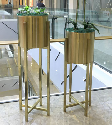 商場金色不銹鋼花盆現場擺放圖