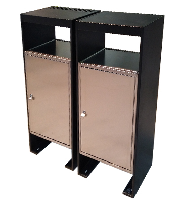 不銹鋼戶外分類果皮箱采用304#優質不銹鋼材質制作,黑色部分做不銹鋼噴塑處理其他為本色,投口搖蓋復位設計防異味擴散,底座孔位與地面固定