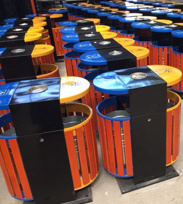 戶外橢圓鋼木分類垃圾桶工廠生產圖