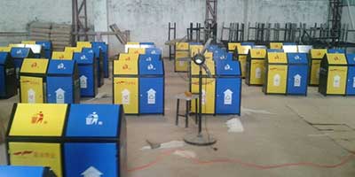 • 產品材質:欣方圳戶外鋼板分類垃圾桶采用優質冷軋鋼材料經剪鈑下料、折彎、沖壓、焊接、打磨、等工藝:表面經過除油、噴砂防銹處理后,再進行酸洗磷化處理;表面清理干燥后整體進行靜電噴涂或烤漆處理,靜電噴涂是經過流水線高溫固化爐固化后再出爐冷卻,加工后的塑粉附著力強,不易剝落;